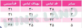 لطفا به سایزبندی توجه فرمایید.سایزها با یک الی دو سانتیمتر اختلاف در نظر گرفته شود.