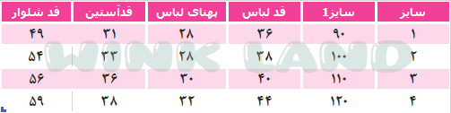 لطفا به جدول سایزبندی توجه فرمایید. برای سایزها یک الی دو سانتیمتر خطا در نظر بگیرید.
