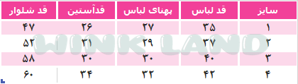 لطفا به جدول سایزبندی توجه فرمایید. برای سایزها یک الی دو سانتیمتر خطا در نظر بگیرید.