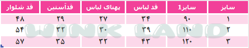 لطفا به جدول سایزبندی توجه فرمایید. برای سایزها یک الی دو سانتیمتر خطا در نظر بگیرید.