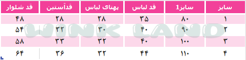 لطفا به جدول سایزبندی توجه فرمایید. برای سایزها یک الی دو سانتیمتر خطا در نظر بگیرید.